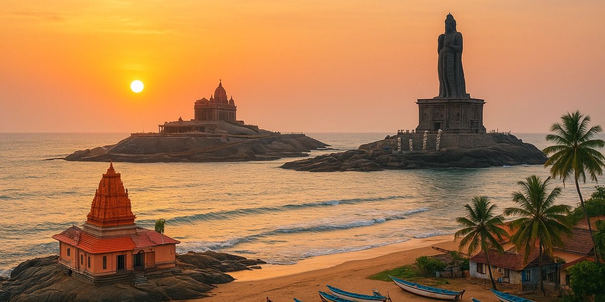After breakfast, take a day trip to Kanyakumari. Visit Vivekananda Rock Memorial, Gandhi Mandapam, and Suchindram Temple. Return to Kovalam by evening.